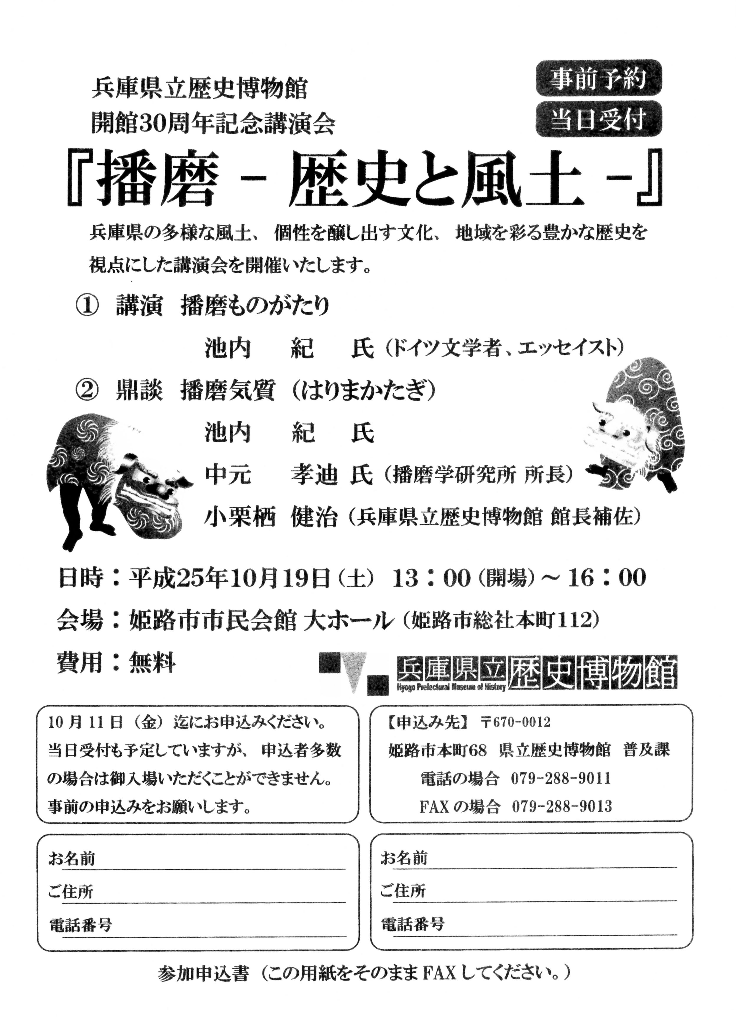 [Himejijc 200] 兵庫県立歴史博物館開館30周年記念講演会『播磨ー歴史と風土』のお知らせ