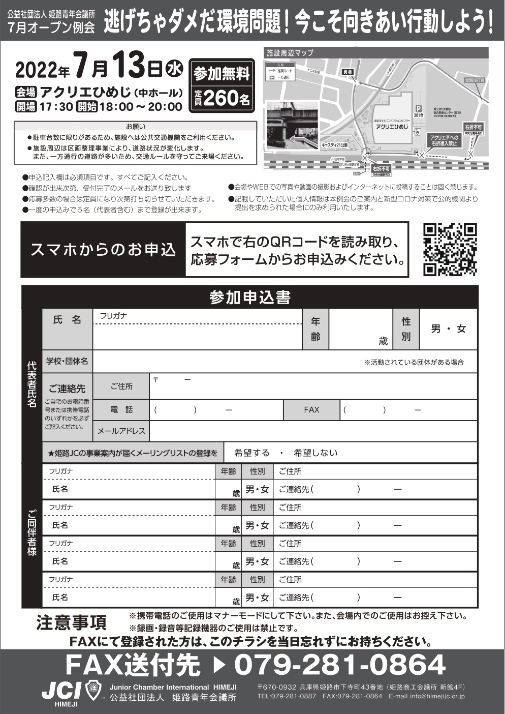 [Himejijc 482] 7月オープン例会開催のご案内並びに参加申込し書添付